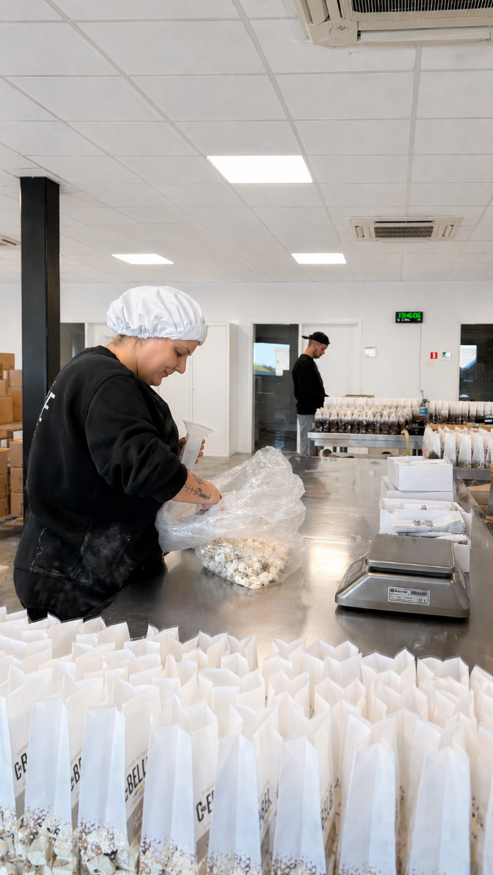 Les confiseries sont ensuite emballées de manière attrayante dans nos ateliers, avec les étiquettes appropriées.